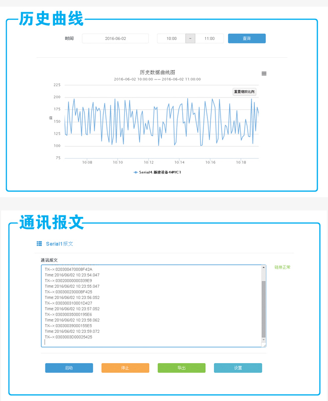 可以对各监控终端任意定时数据和年、月、日统计数据进行查询,显示的表格、曲线图 、直方图均可打印,且可以对历史故障进行查询打印。