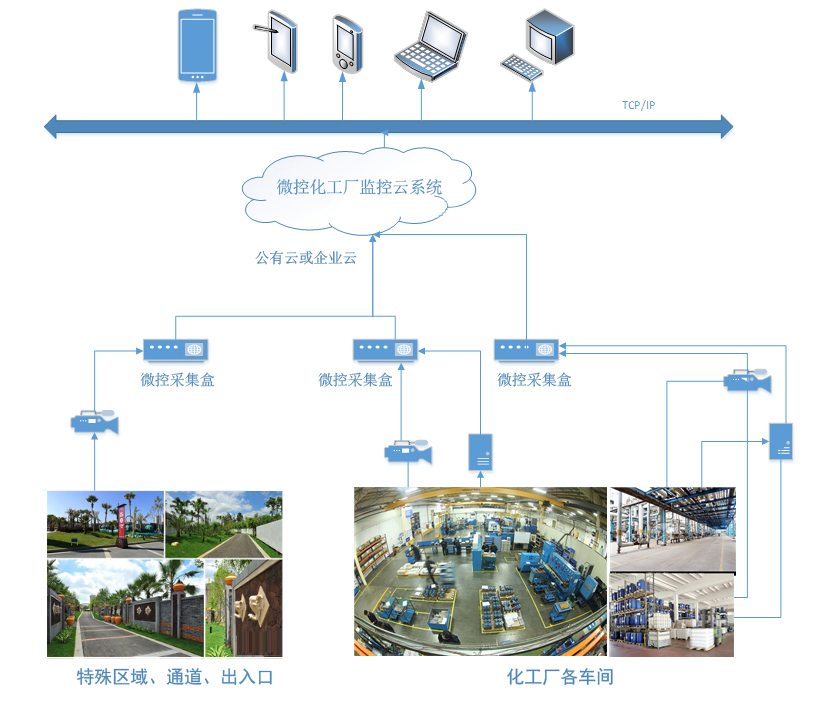 基于保护化工厂区生产运行、财产与人身安全和更方便的管理等目的,针对主要生产区域的重要生产 数据进行监测,并对重要特定区域、通道、出入口进行图像监控并通过存储设备保存,使管理者可以 足不出户就能全面、准确、及时地观察到被监测现场的真实情况,节省了大量宝贵的时间,大大地减 轻了管理层的工作量,极大地提高了管理效率和管理自动化水平。